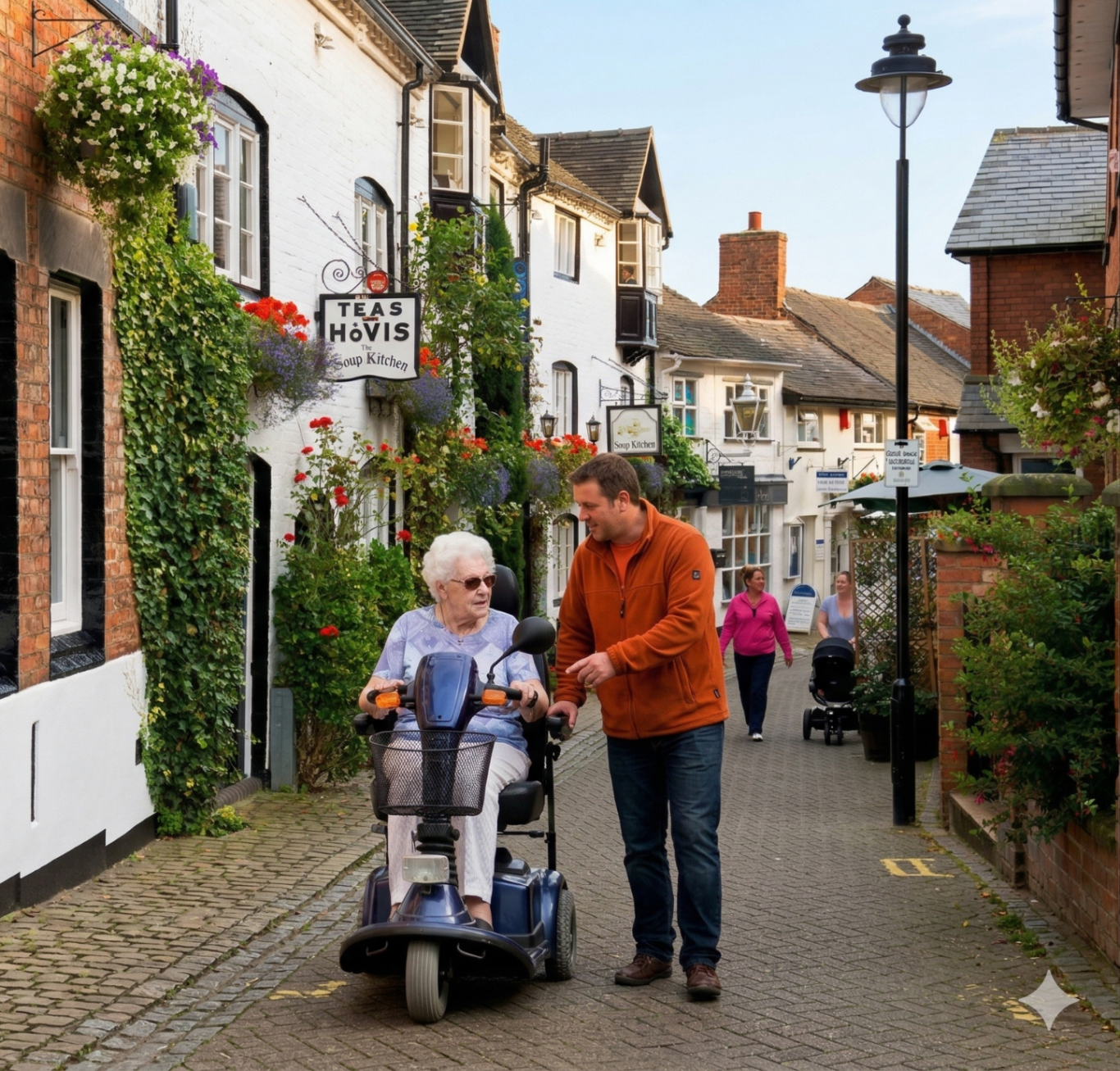 Errands & Shopping. Never worry about a heavy shopping bag or a busy high street again. Whether it’s a quick trip for the essentials or a leisurely stroll through the shops, we provide the steady arm and the transport to make it easy.